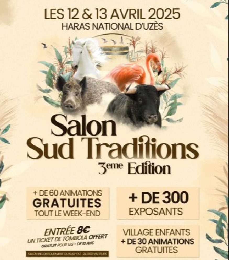 Ce salon qui se tiendra les 12 et 13 avril 2025 au Haras National d’Uzès. Avec plus de 300 exposants et 60 animations gratuites, cet événement met à l’honneur la chasse, l’univers équin, la pêche, la fauconnerie, la gastronomie, les traditions camarguaises et bien plus encore !