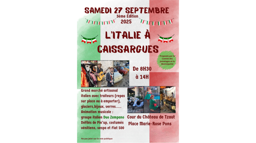 Il est venu présenter la 3ᵉ édition de "L’Italie à Caissargues", organisée par le Comité des Jumelages et la Mairie de Caissargues, qui se déroulera samedi 27 septembre 2025.