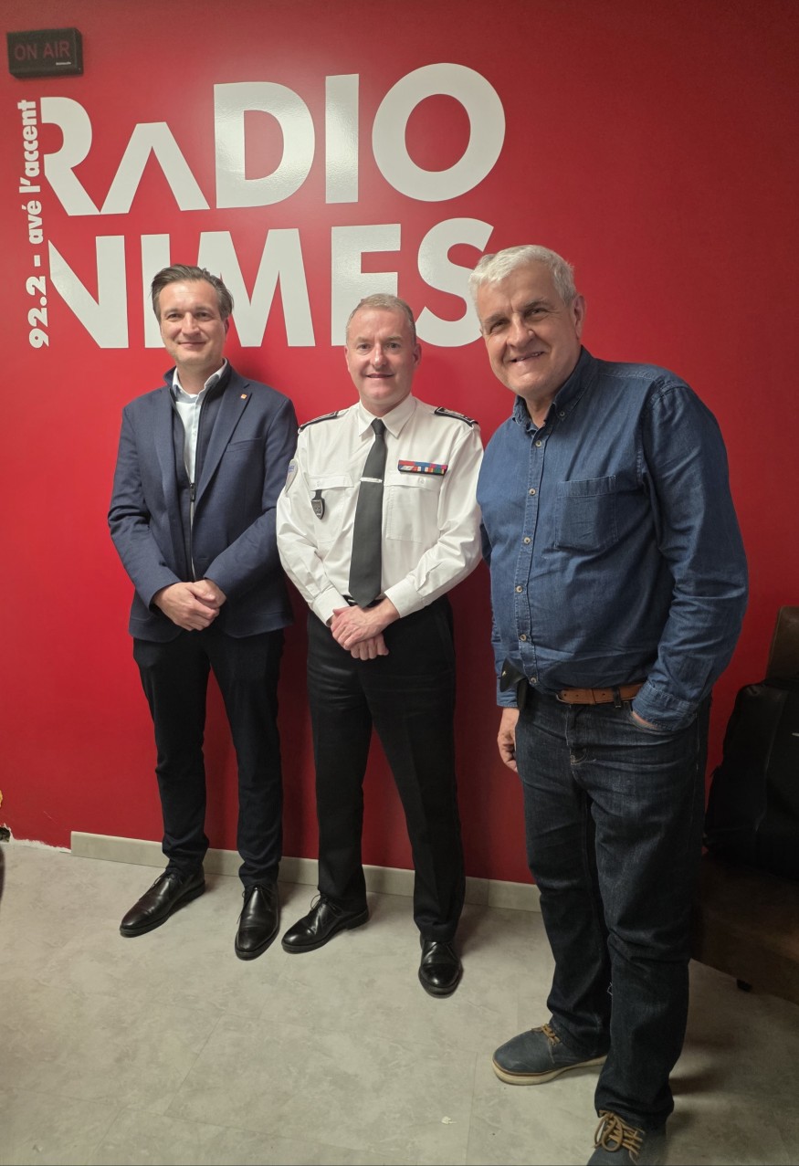 Pierre-Luc PETIT-DELCLEVE reçoit Jean-Philippe NAHON, directeur interdépartemental de la police nationale du Gard et Christophe MAUREL, expert en sécurité privée pour les entreprises, directeur opérationnel de Ranc Développement et trésorier de l'Association Nationale des Métiers de la Sécurité.